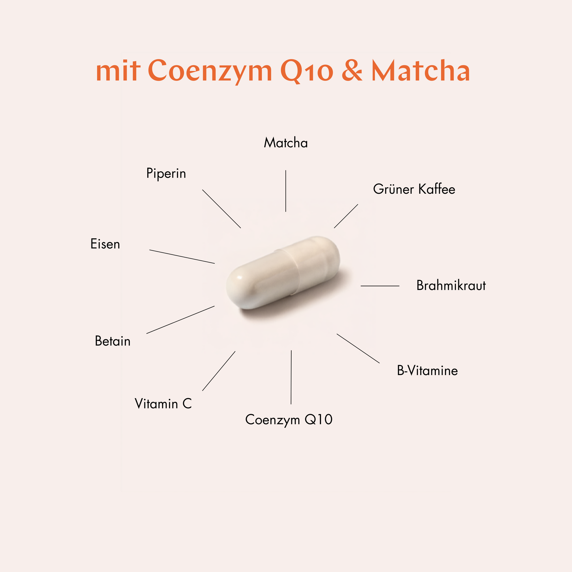 Natural caffeine in a smart combination – for sustained alertness without jitters. The L-theanine from the matcha ensures balance despite the energy.