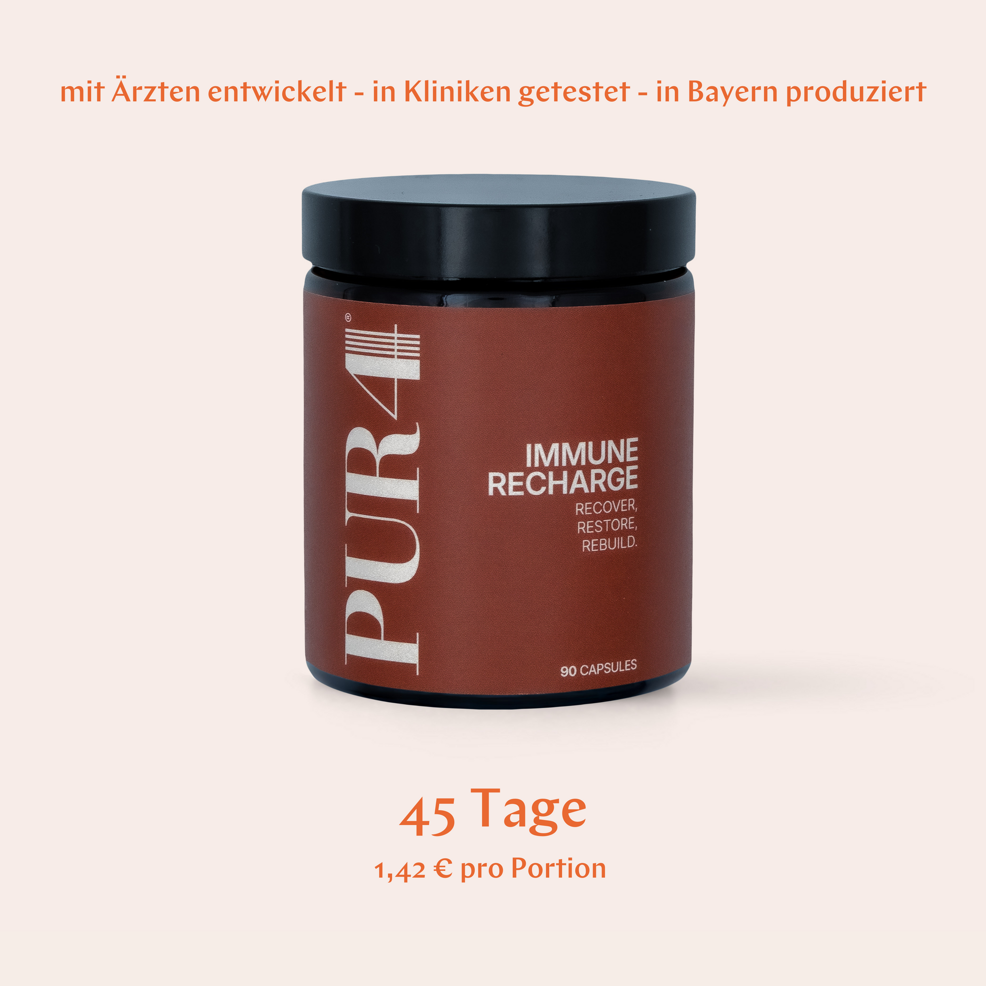 Während andere Produkte oft rein symptomatisch arbeiten, wirkt PUR4 RECHARGE systemisch: Es stärkt dein Immunsystem, unterstützt die Zellreparatur, reguliert deinen Stressstoffwechsel – und bringt dein Nervensystem zurück in Balance.