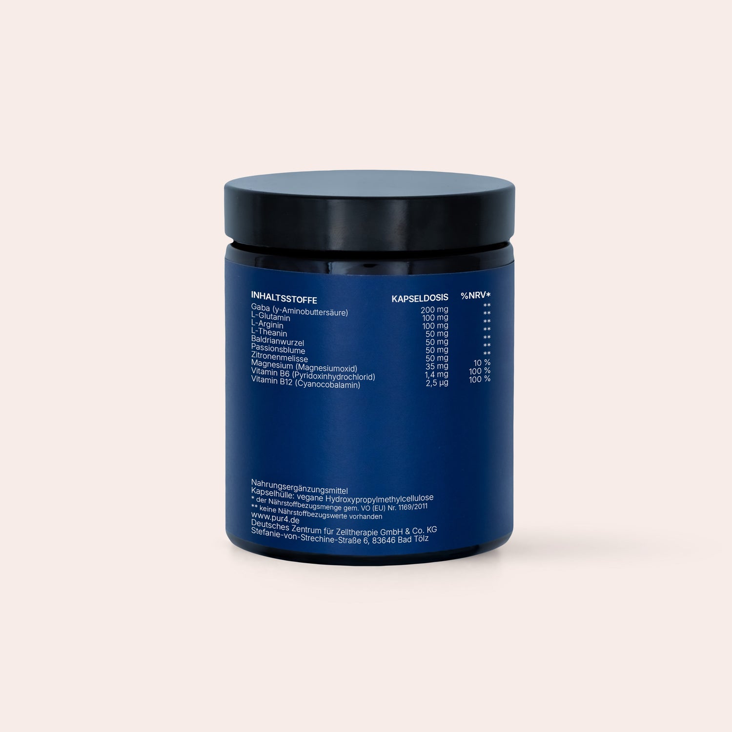Im Mittelpunkt steht ein hochwertiger GABA-Komplex, ergänzt durch L-Theanin, L-Glutamin und L-Arginin. Diese Aminosäuren stehen in Verbindung mit Prozessen des Neurotransmitter-Stoffwechsels und sind besonders abends eine beliebte Wahl zur Unterstützung innerer Balance.